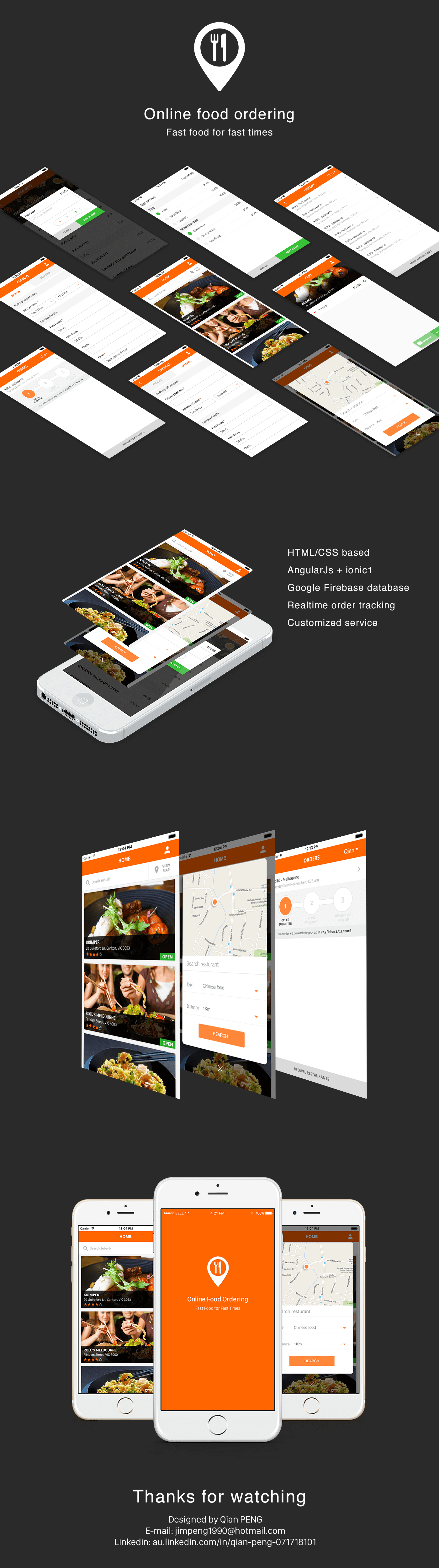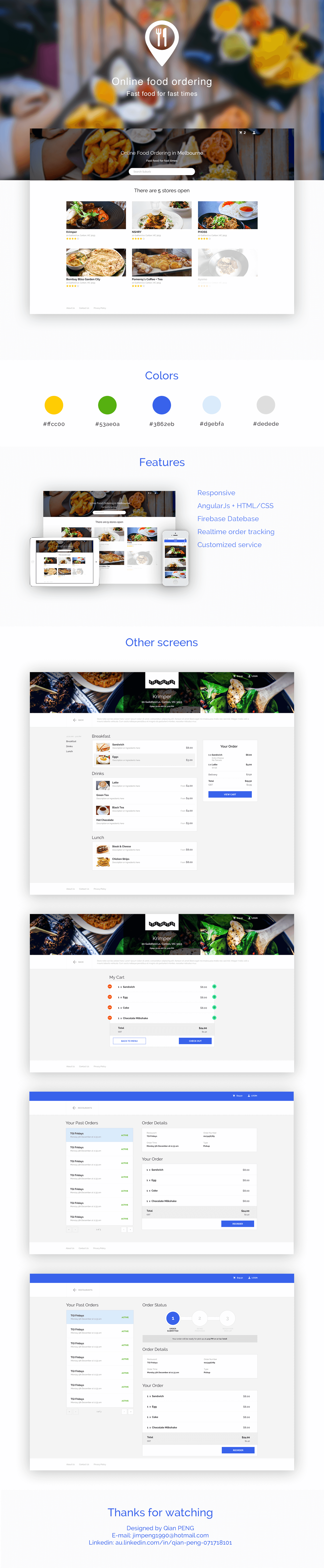 - Design and develop the UI (front end) of the online food-ordering website/APP project